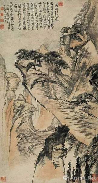 清 石涛《黄澥轩辕台图轴》 纸本设色