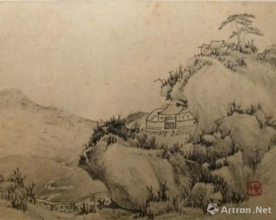 清 弘仁《山水册》 纸本墨笔、设色