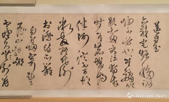 可以从王铎这幅画里的草书中去看一下他的书法功力,诗里有一句话叫作“微官终代谢”,从这一行行书中就能看到,五个字一列,中间呈现出了一个中轴线,把五个字的核心串联起来,书家很难做到,这也是为什么王铎是一代书法大家。