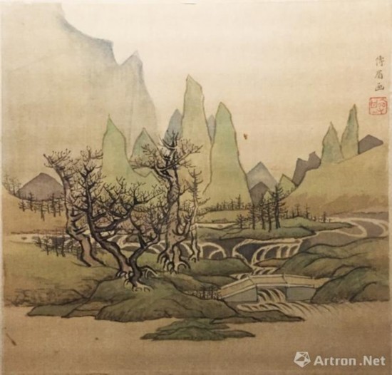 清 傅山、傅眉 《山水花卉册》 绢、纸本设色