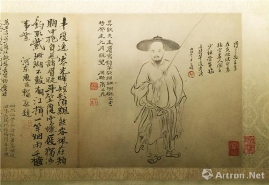 清 禹之鼎 《为其纯先生画像卷》 纸本墨笔 这幅画就是以杜甫的诗为题,画一个文士,头戴斗笠,手执钓竿的形象。