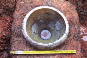 在长沙东牌楼宋代街坊遗址上发现的特殊水井和釉陶缸。宋人或用釉陶缸,借凉凉的井水在夏天储藏肉和蔬菜。