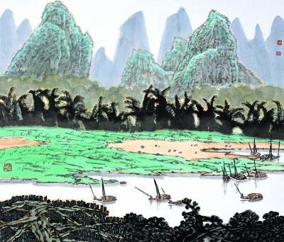 广西地处南方,有亚热带的自然特征,有少数民族多元、多样的文化背景,尤其以“甲天下”的桂林山水而享誉国内外,这些为“漓江画派”提供了一张天然的名片?!袄旖伞弊?003年开始正式提出,可谓地方政府与当地画坛共同打造画派的典型代表。中国美术家协会副主席、漓江画派促进会会长、画家黄格胜对画派的地域性毫不讳言。他说:“我们这里所说的漓江画派,并不是专指以漓江为表现题材的画家团队,而是泛指活跃在当今美术领域的广西美术家队伍,以中青年画家为主、以中国画画家为主,包括油画家、版画家、水彩画家、雕塑家。打造、扶持、培育漓江画派,目的就是要塑造广西美术的整体形象,宣传广西美术的新成就,扩大广西美术的影响力?!?/p>