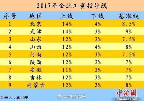 关键词:9省份 2017年工资指导线