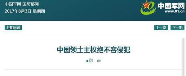 【环球网综合报道 记者 赵衍龙】中国外交部8月2日发布《印度边防部队在中印边界锡金段越界进入中国领土的事实和中国的立场》后,8月3日上午至4日凌晨,新华社 、解放军报、外交部、国防部、中国驻印度大使馆以及人民日报等中国6个国家部委和机构先后就印方越界事件发声,披露印方非法越界的性质,并强调中国将采取一切必要措施维护自己的正当合法权益。