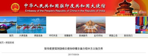 中国驻印度大使馆:印方不要低估中国的决心