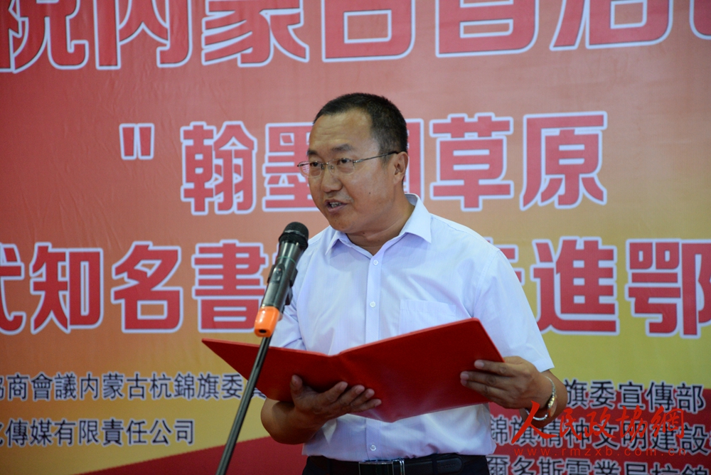 杭锦旗文化艺术研究院院长,鄂尔多斯华夏文化艺术研究院院长,青年书法家刘永军先生介绍出席活动的领导嘉宾