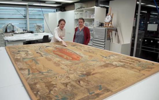 大英博物馆修复敦煌巨作之三 面对绣线脱落等问题