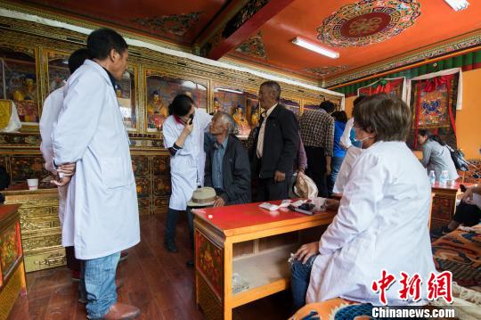 图为北京同仁张晓楼眼科公益基金会爱心团队为日喀则市民义诊 何蓬磊 摄