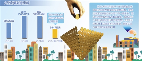 “2017年定增市场整体呈现下降趋势,主要原因离不开再融资新规和减持新规两大因素。其中,影响较大的再融资新规旨在调整过热的定增市场,提高定增发行门槛,遏制市场上过度融资现象,降低企业套利空间,从而使定增市场整体回归理性。”第三方股权投资研究机构投中研究院助理分析师马少波说。