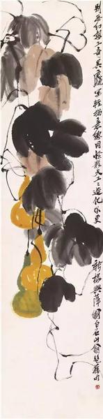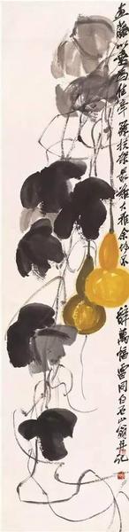 图6 葫芦 齐白石 托片 纸本设色 137.5×34.5cm 无年款 北京画院藏