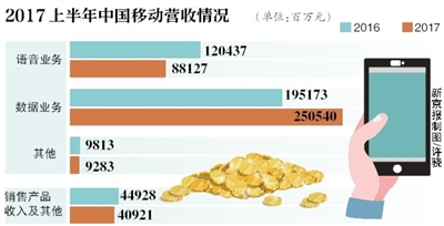除去家庭市场,在个人市场方面,移动流量消费依旧是其主要增长点。财报显示,2017年上半年,中国移动通信服务收入增幅达到6.9%,高于行业平均水平。无线上网收入达到1877亿元,占通信服务收入比超过50%。
