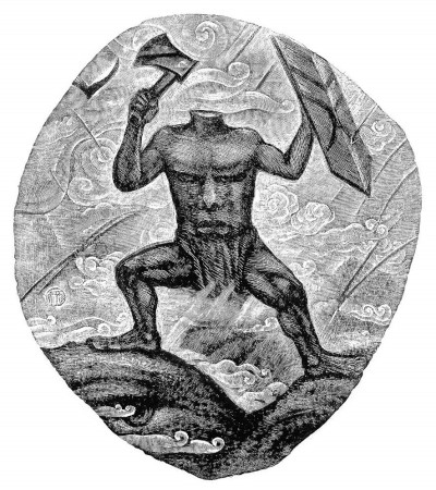 徐龙宝的《山海经》木刻插图具有饱满的精神意蕴。众所周知,中外各民族均从各自的神话中汲取精神与意志的力量作为文化的重要源头,神话人物在塑造民族性格方面具有特殊的作用。本书中的夸父、蚩尤、精卫、形天等神话形象,画家均赋予了昂扬的能量。如形天是中国神话中常被人提及的著名人物。据《海外西经》云:“形天与帝争神,帝断其首,葬之常羊之山,乃以乳为目,以脐为口,操干戚以舞?!毙鹗隽诵翁煊牖频壅髡奖豢诚峦仿?,埋在常羊山,但失头的形天以双乳为眼,以脐为口,继续持盾操斧,战斗不止。陶渊明曾在《读山海经》诗中赞道:“刑天舞干戚,猛志固常在。”这种不屈不挠的意志已成为中华民族的精神象征而受人敬仰。徐龙宝所刻形天之像,脚踏巨石,肌肉暴突,血脉贲张,躯干上面色刚毅,蕴含了强大的正能量,比之古代的白描线条更具有令人振奋的张力,令观者能从中汲取鼓舞的精神力量。