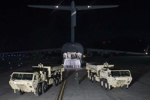 资料图片:“萨德”系统部分装备运抵首尔以南约70公里处的美军驻韩国乌山空军基地。 新华社发