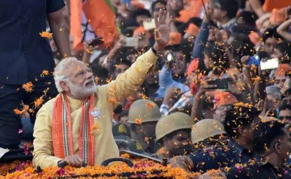莫迪在接受民众的欢呼