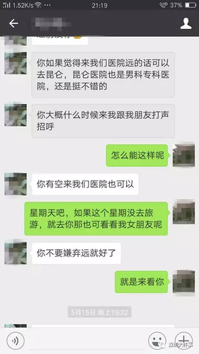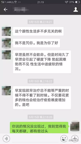 闲来无事小阳便咨询了几句,但聊天话题逐渐“跑偏”了。小阳聊到,自己跟女朋友已经分手半年,问微信中的美女是否可以“交往”。美女头像则表示,交往可以,但她从小阳的叙述中判断出他有“早泄”问题,建议小阳先去医院检查,再谈其他。