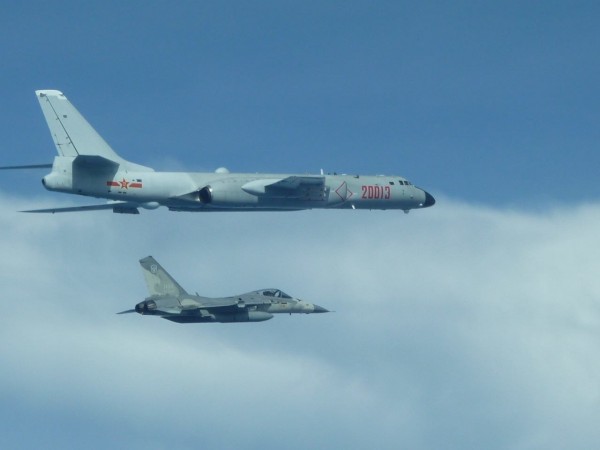此前大陆轰-6战机绕台,台防务部门称“全程监侦”。图片来源:台湾《自由时报》