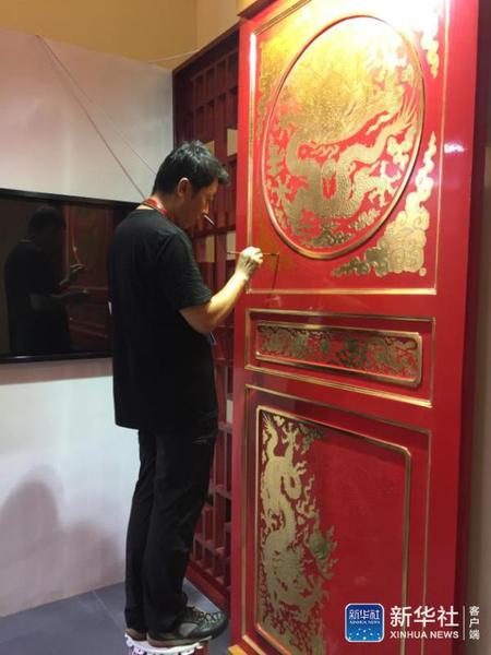 做古建筑修复的刘金铎,是由父亲带入行的。在父亲的带领下,他参与过北京很多重要的古建筑修复工程。他的手艺主要是油漆彩绘和“贴金”,会展上他正在绘制水月观音像的复制品。这是北京法海寺的一幅明代壁画,因为工艺复杂,他已经画了两个半月了。刘金铎觉得,这手艺最重要的是耐心、踏实肯干。