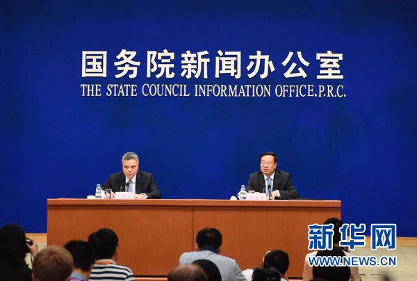 8月14日,国务院新闻办公室在北京举行新闻发布会,邀请国家统计局新闻发言人毛盛勇(右)介绍2017年7月份国民经济运行情况,并答记者问。新华社记者 金良快 摄