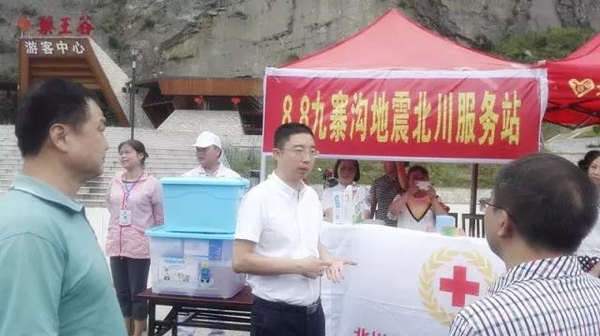 8月9日15时00分,在北川救援服务站开展应急物资保供工作