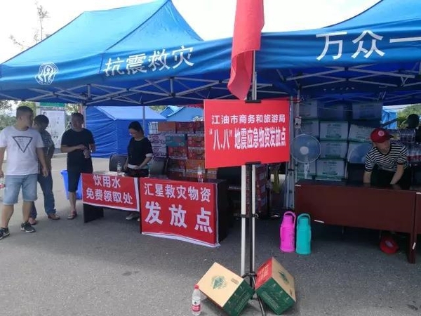 8月9日13时30分,江油救援站救灾物资发放点