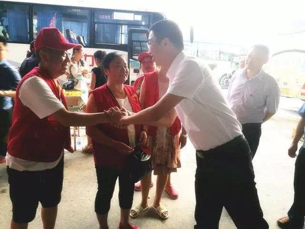 8月9日16时10分,在平武客运站转运现场慰问抗震救灾一线志愿者