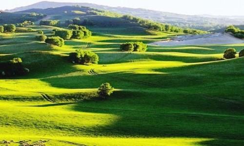 柔和的曲线,起伏的丘陵,绿茵如毡绵延,白桦点缀其间。10余天就换一茬的百花世界,勾勒出一幅幅油画般的美丽画卷。四季分明的自然风光使得这里成为“休闲者的胜地、观光者的乐园、摄影者的天堂”。这就是风情独具的乌兰布统草原。