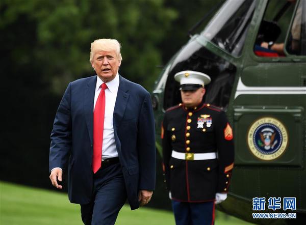 8月14日,在美国华盛顿,美国总统特朗普抵达白宫。新华社记者 殷博古 摄