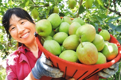 8月8日,新疆铁门关市博古其镇党建扶贫果园内贫困农民在采摘早酥梨准备销往海外市场。 徐明生 常玉兰摄(人民视觉) |