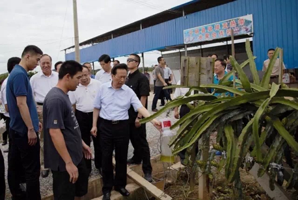 产业扶贫是此次关注的重点之一,8月15日下午,陈昌智率队来到崇左市宁明县明江镇驮排屯的火龙果种植基地,2014年这里成立了火龙果种植专业合作社,目前合作社社员达到100人,其中94人为建档在册的贫困户。合作社成立以来,每年累计使用周边劳动力4000人次,不仅解决了周边农户就业问题,还带动了部分农户种植火龙果脱贫致富。