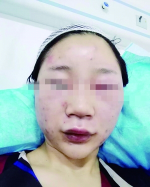 后来,两位路人将满脸是血的菲菲扶进了附近的岗亭。菲菲打电话向家人求救,并拨打了110。菲菲的后脑勺被打破,伤口缝了6针,左眼也肿胀得厉害,根本睁不开。