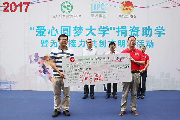 8月19日,由浙江绿色共享教育基金会、昆药集团联合共青团昆明五华区委、五华区关心下一代工作委员会共同举办的“爱心圆梦大学——绿色共享·学子情深”捐资助学仪式在昆明举行。