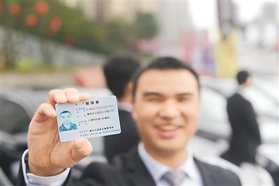 一名重庆驾驶员展示自己的网络预约出租汽车驾驶员证。新华社记者 陈 诚摄