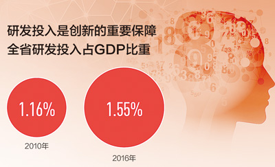 近年来,福建省出台一系列措施,提升企业科技创新力。如出台的《企业研发经费投入分段补助实施办法》,全省统筹13.96亿元,对企业研发经费投入给予分段补助、增量奖励,降低企业研发风险,鼓励企业研发投入。2016年,全省研发投入占GDP比重从2010年的1.16%提高到1.55%。同时,鼓励企业设立研发机构,建立重大创新项目成果转化推进协调机制,深化制造业与互联网融合发展。