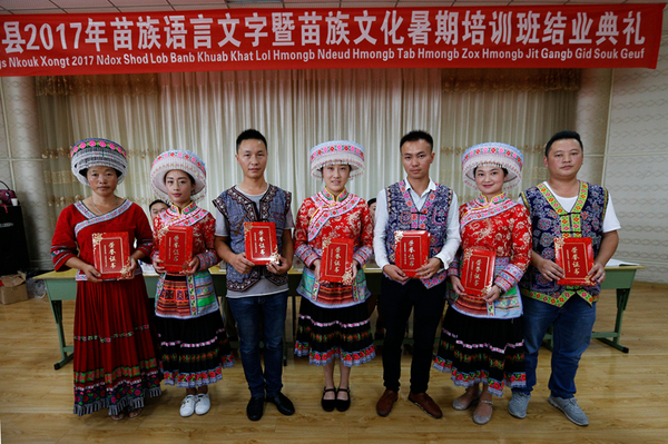 苗族语言文字暨苗族文化暑期培训班颁发结业证书