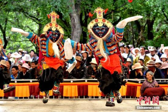 藏戏表演吸引大量民众观看(资料图)。中新社记者李林摄