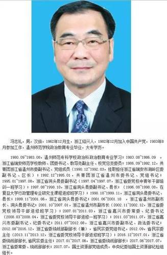 跻身浙江省委常委仅2个月,冯志礼奉调进京,履新中央纪委驻国土资源部纪检组组长。