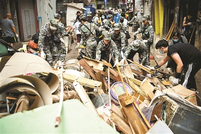 驻澳门部队协助澳门特别行政区政府救助台风灾害 供图/新华社