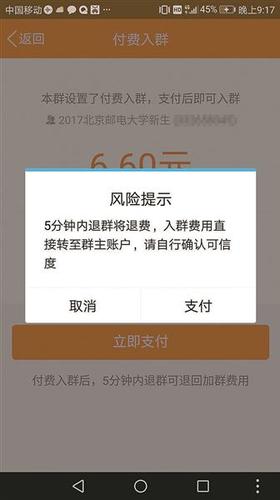 付费进群页面显示将钱转给群主