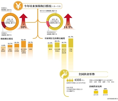 “财政运行总体平稳,预算执行情况较好”,肖捷说,1至7月,全国一般公共预算收入110762.46亿元,增长10%;全国一般公共预算支出116979.38亿元,增长14.5%,高于今年同期收入增幅4.5个百分点。