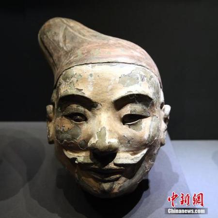 8月30日,展馆内展出的保护后的彩绘俑头。当日,“留住色彩——陶质彩绘文物?;こ晒埂庇谖靼睬厥蓟实哿瓴┪镌嚎唬舱钩鱿惹刂猎奶罩撇驶嫖奈?21件(组)。通过集中展示近年来陶质彩绘文物的?;こ晒?,以提升公众?;の奈锏囊馐丁>萸厥蓟实哿瓴┪镌涸悍浇樯?,经过多年艰苦攻关,首次在兵马俑的彩绘中发现了古人人工合成的“中国蓝”和“中国紫”。 中新社记者 张远 摄