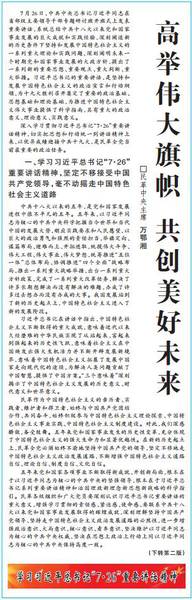 8月15日,万鄂湘在《团结报》上发表学习习近平总书记“7?26”重要讲话精神的署名文章《高举伟大旗帜 共创美好未来》。