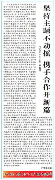 8月26日,严隽琪在《团结报》上发表学习习近平总书记“7?26”重要讲话精神的署名文章《坚持主题不动摇 携手合作开新篇》。