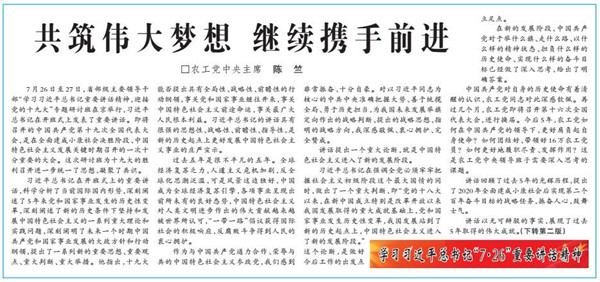 8月29日,陈竺在《团结报》上发表学习习近平总书记“7?26”重要讲话精神的署名文章《共筑伟大梦想 继续携手前进》。