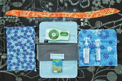 记者购买了喷雾、冰垫、加湿风扇等9种降温工具,并对其效果进行测试。本版摄影/新京报记者 王嘉宁