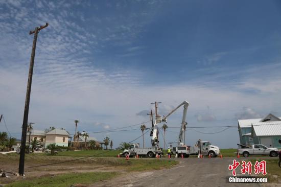 当地时间9月3日,“哈维”袭击后的第十天,飓风登陆地得州南部沿海小镇石港(Rockport)已进入灾后重建阶段。中新社记者 曾静宁 摄