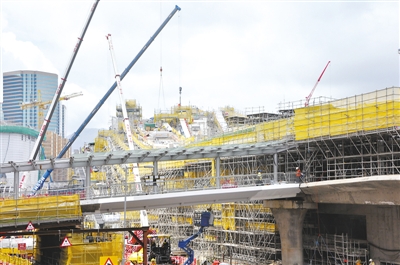 图为正在施工中的香港西九龙高铁总站,将成为香港新地标。(陈晓星摄)