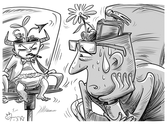 每个人都会老去,这是再自然不过的、无法抗拒的规律?!澳忝且膊换崮昵岫嗑??!闭馑闶且恢肿晕野参?,也算是对“正年轻的人”的一种回击。只不过,在这个大家似乎都“老”得越来越快的社会,“年轻”与“老去”的对抗,早已不再是纯粹的自然年龄的对抗,而是不同年纪间的代际碰撞。在年少轻狂者的眼里,稍微上点年纪,做事不够锐气,这些人在他们眼里已经“老”了;原本年纪轻轻,但被庸常生活打压得不够顺畅,这些人自称自己“老”了;手里握个保温杯,还未来得及说出中年?;鹑艘丫的恪袄稀绷恕非兴?,这不是一个“老”得越来越快的社会,而是一个被舆论塑造出的“老”得越来越快的社会。