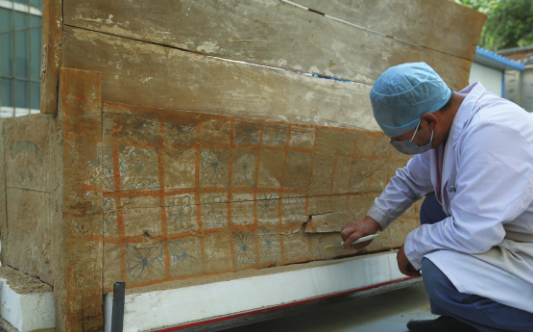 根据文献,对葬具饰彩,做成彩棺以奉侍死者,是生者对死者的特别礼仪方式。而彩绘棺具,古代又称画棺,它的使用有严格的礼制,有一定身份和地位者,死后才可享有这一礼制??脊湃嗽币虼送撇?,这口彩棺的墓主可能有一定的身份地位。