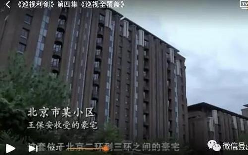 中纪委专题片《巡视利?!返谒募?,披露了财政部原副部长王保安收受一名商人的厚礼——北京二环到三环之间的一套豪宅,面积318平米,购房、装修总费用近5000万。